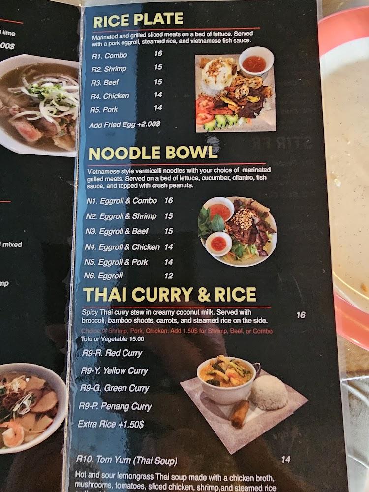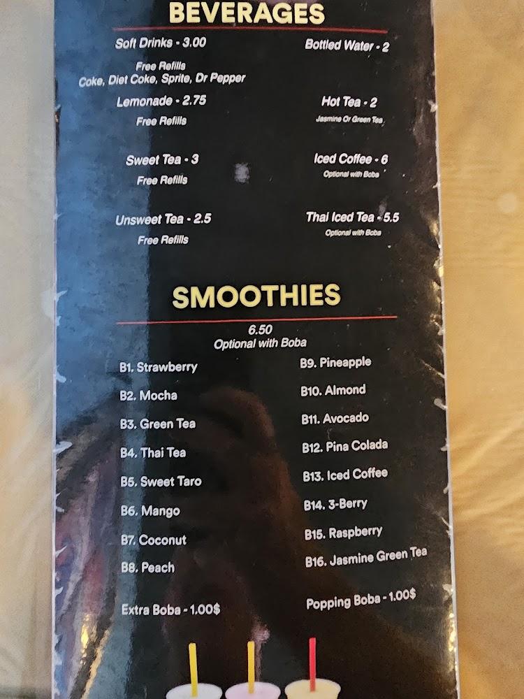 The menu at Noodles & Grill showcases a diverse selection of Asian cuisines focusing on noodle and rice dishes. From creamy curries to savory stir-fries, there is something for everyone. Popular dishes include Pad Thai, known for its perfect balance of flavors, and various Pho options, which deliver rich, comforting broths. Fried rice and noodle soups further expand the offerings, catering to all tastes. For those craving something different, try the Cheese Wontons or Crab Rangoons as appetizers, which pair well with the main dishes. Smoothies and refreshing beverages round out the menu, making for a satisfying meal experience. Prices are kept reasonable, ensuring a great value for the quality of food served.